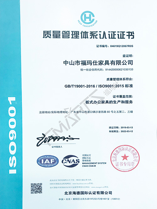 ?,斒?001質(zhì)量管理體系認(rèn)證證書