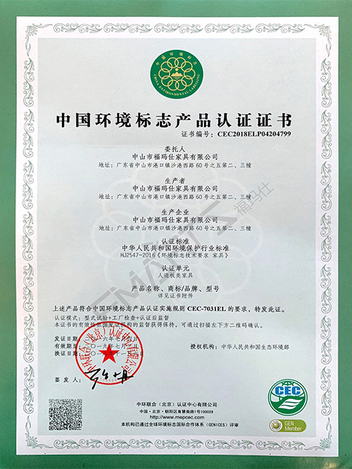 福瑪仕CQC中國環(huán)保產(chǎn)品認(rèn)證證書