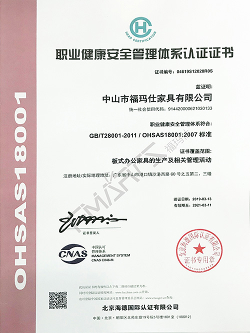 ?,斒?8001職業(yè)健康安全管理體系認(rèn)證證書